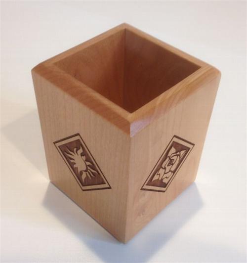Maple Pencil Holder with one of the four seasons engraved on each side.